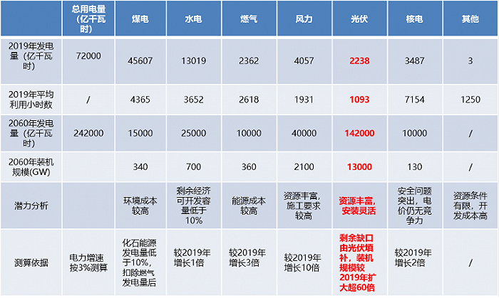 光伏:預(yù)計(jì)到2060年,光伏年發(fā)電量較2019年擴(kuò)大超過60倍,達(dá)到14.2萬億千瓦時(shí)。無論從資源豐度、降本空間還是施工環(huán)境要求角度出發(fā),光伏在“零碳能源”中都具備突出比較優(yōu)勢。不出意外,將擔(dān)當(dāng)中國能源轉(zhuǎn)型的“一號位”,剩余電力缺口也將由光伏發(fā)電彌補(bǔ)。