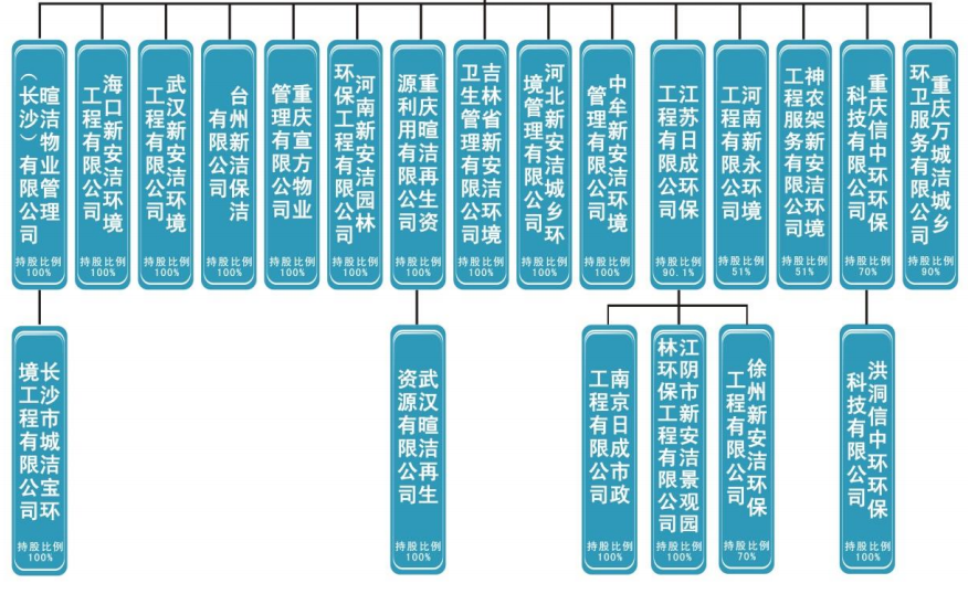 就在其宣布轉(zhuǎn)板消息不久,9月3日,北京證券交易所(下文簡稱“北交所”)注冊成立,11月15日將正式開市。據(jù)了解,北交所實行試點證券公開發(fā)行注冊制,由全國中小企業(yè)股份轉(zhuǎn)讓系統(tǒng)中的精選層整體平移而來,定位為“專精特新”中小企業(yè)直接融資服務,偏重服務創(chuàng)新型中小民營企業(yè)。這樣一來,對于環(huán)保產(chǎn)業(yè)中有機固廢處理、節(jié)能降碳裝備、資源循環(huán)利用等細分領(lǐng)域的科技創(chuàng)新驅(qū)動型中小企業(yè)來說,或許更有機會。而根據(jù)規(guī)則,屆時包括新安潔在內(nèi)的新三板市場精選層首批68家公司將全部平移進入北交所。但對于已經(jīng)進入轉(zhuǎn)板通道的新安潔來說,或許因為對北交所活躍度有所擔心,或許由于轉(zhuǎn)板箭在弦上不得不發(fā),也或許其對轉(zhuǎn)板成功率有更多的信心,所以北交所的設立并沒有打斷其轉(zhuǎn)板的計劃。9月 13日、29日、10月20日和11月3日,新安潔專門發(fā)布了轉(zhuǎn)板進展公告,稱創(chuàng)業(yè)板轉(zhuǎn)板工作仍然按計劃推進,并將在完成各項準備工作后向深圳證券交易所提起申報。從其所處的行業(yè)看,目前環(huán)衛(wèi)市場的格局已經(jīng)有了新的變化,市場整體的領(lǐng)先地位已經(jīng)被北京環(huán)衛(wèi)、僑銀環(huán)保、玉禾田、啟迪桑德、盈峰環(huán)境、北控城市服務、龍馬環(huán)衛(wèi)等新老環(huán)衛(wèi)企業(yè)穩(wěn)定占據(jù),一些領(lǐng)先企業(yè)開始向城市服務運營商轉(zhuǎn)型。在業(yè)務方面,新安潔的業(yè)務范圍已經(jīng)覆蓋了重慶、湖北、江蘇、河南、山東、湖南、安徽等全國12個省,重慶區(qū)域的業(yè)務占比約1/4。其中,“重慶市兩江新區(qū)生活垃圾分類”、“武漢市東西湖區(qū)生活垃圾分類”、“山東青州市城鄉(xiāng)環(huán)衛(wèi)一體化”和“河南汝南縣城鄉(xiāng)環(huán)衛(wèi)一體化”項目,入選了中國城市管理協(xié)會主辦的2018國際城市環(huán)境衛(wèi)生博覽會示范案例。▼新安潔公司結(jié)構(gòu)圖(截至2020年6月,來源:新安潔公告)此外,隨著這些年互聯(lián)網(wǎng)、物聯(lián)網(wǎng)、信息技術(shù)、智慧城市、AI等新技術(shù)在環(huán)衛(wèi)行業(yè)中應用越來越廣泛,新安潔也希望打造公司科技屬性,以全面實現(xiàn)環(huán)衛(wèi)智能化運營。
