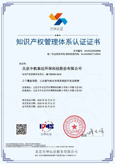 2016年3月22日,中航泰達掛牌新三板。因為領(lǐng)先的行業(yè)地位和良好的成長性,之后入選創(chuàng)新層。2020 年7 月27 日,中航泰達作為全國首批32家(北京首批6家)企業(yè)入選新三板精選層,7月30日完成公開發(fā)行程序,正式開市交易。而在11月15日北交所開市之際,中航泰達也將隨之平移至北交所,迎來自己的新時代。作為一家入圍北交所首批上市名單的“專精特新”企業(yè),自成立以來,中航泰達就非常注重新技術(shù)、新產(chǎn)品的研發(fā)與改進,在煙氣治理方面形成了完整的知識產(chǎn)權(quán)體系。此前,它曾經(jīng)成功獨創(chuàng)開發(fā)了氣動脫硫技術(shù)——旋渦撞擊法,將該成果轉(zhuǎn)化且成功申請了自主知識產(chǎn)權(quán)的專利技術(shù)——旋渦撞擊流脫硫除塵裝置。同時,他們還引進國外專利技術(shù),成功開發(fā)出了一種適合于燒結(jié)、球團的煙氣脫硝技術(shù)——低溫濕法脫硝技術(shù),為前期開疆拓土進行了很好的技術(shù)支撐。目前,中航泰達在逆流活性炭工藝、濕法超低排放、低溫SCR 等領(lǐng)域擁有授權(quán)發(fā)明專利8 項、實用新型專利技術(shù)83 項。▼中航泰達知識產(chǎn)權(quán)管理體系認證證書而在鋼鐵、焦化行業(yè)煙氣治理領(lǐng)域奠定了一定的市場地位的基礎上,它現(xiàn)在也正逐步向水泥、化工等其他非電行業(yè)滲透。