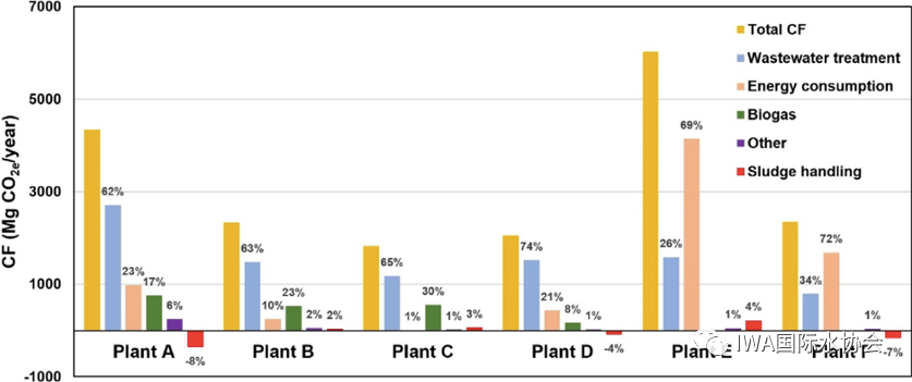 圖.每個(gè)污水廠的碳足跡細(xì)分組成比較