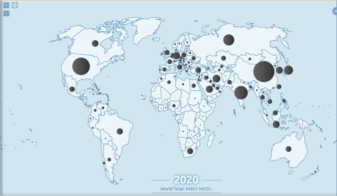 2020年全球碳排放分布  資料來源:Global Carbon Atlas