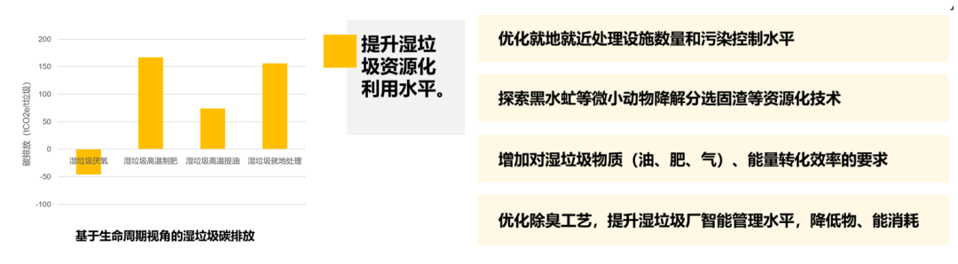 從生命周期視角估算,不同濕垃圾處理工藝碳排放差異較大,但是高能耗普遍是各類工藝優(yōu)化的重點。建議因地制宜選取處理工藝的同時,進(jìn)一步提升濕垃圾資源化利用水平。