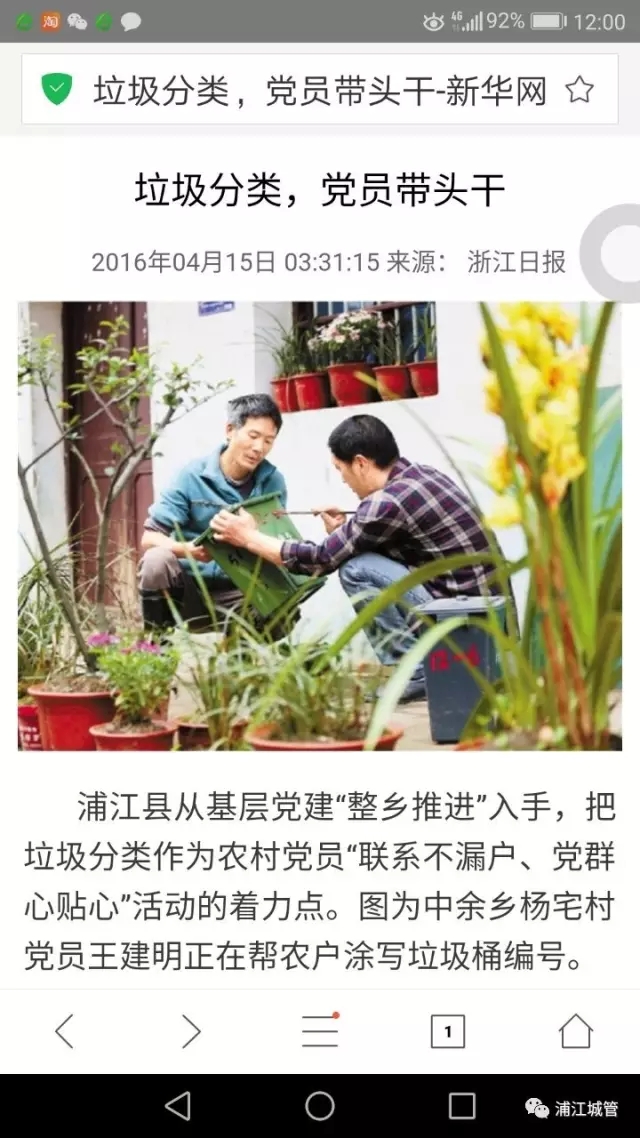 三是黨建帶動強。浦江縣“黨建+美麗鄉(xiāng)村”建設(shè)工作抓得很好,比如在全市率先實行垃圾分類“黨員聯(lián)系農(nóng)戶制度”,通過黨員農(nóng)戶聯(lián)名公示、捆綁考核,有效提高了源頭分類水平。