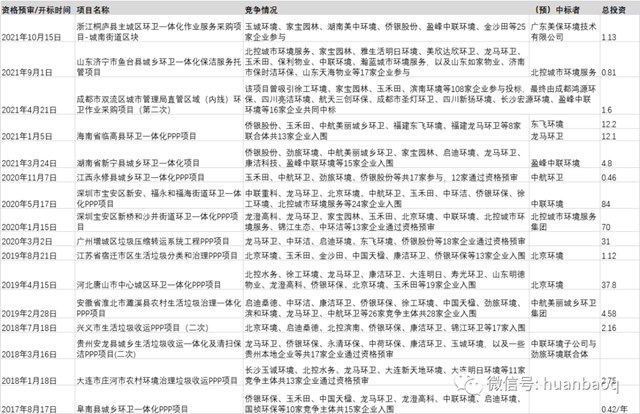 ▼表2 2017年至今部分競(jìng)爭(zhēng)激烈的環(huán)衛(wèi)項(xiàng)目列表