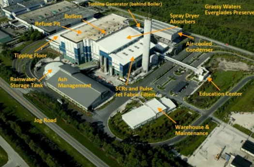 接下來說重點,介紹一下這個焚燒廠。全廠為3x1000t/d的偉倫爐排,煙氣工藝采用了SDA+布袋+GGH+SGH+SCR。該廠位于特朗普老家,而且離得不遠,是目前美國最先進的焚燒廠,也是第一座采用SCR工藝的焚燒廠,2012年開始建設(shè)至2015年投入商業(yè)運行,隸屬于佛羅里達州海岸縣固廢管理局。