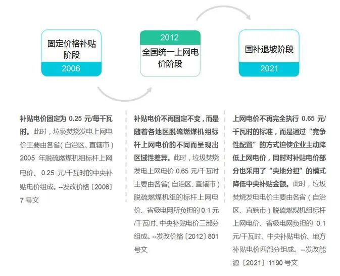 通過對(duì)垃圾焚燒發(fā)電電價(jià)補(bǔ)貼政策的梳理可以看出,我國垃圾焚燒發(fā)電電價(jià)補(bǔ)貼價(jià)格主要經(jīng)歷了三個(gè)階段的發(fā)展,即:
