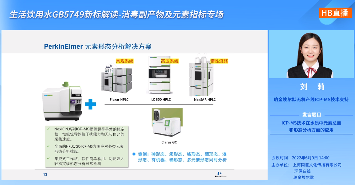 6月9日下午,由同巨傳媒、環(huán)保在線、珀金埃爾默共同主辦的【生活飲用水GB 5749新標(biāo)解讀-消毒副產(chǎn)物及元素指標(biāo)專場(chǎng)】線上直播論壇準(zhǔn)時(shí)開播。來自中疾控環(huán)境所水質(zhì)量與健康監(jiān)測(cè)室主任張嵐研究員、珀金埃爾默無機(jī)產(chǎn)線ICP-MS技術(shù)支持劉莉、青島理工大學(xué)環(huán)境與市政工程學(xué)院副院長(zhǎng) 校分析測(cè)試中心主任馬繼平參加了此次線上論壇,并針對(duì)GB 5749新標(biāo)準(zhǔn)的內(nèi)容作了相關(guān)解讀。整場(chǎng)直播精彩紛呈、干貨不斷,專家們都分享了哪些豐富內(nèi)容?快跟隨小編來回顧一遍!