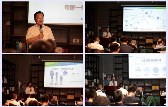 參觀環(huán)節(jié)結(jié)束后,南方泵業(yè)杭州銷售公司副總經(jīng)理金甲根金總向來訪專家領(lǐng)導(dǎo)致歡迎辭,對(duì)于本次浙江大學(xué)建筑設(shè)計(jì)研究院的考察指導(dǎo)表示感謝。隨后南方泵業(yè)分別從公司概況、建筑用泵產(chǎn)品、成套給水排水智慧化技術(shù)應(yīng)用這三個(gè)方面進(jìn)行了匯報(bào)分享。專家們對(duì)于南方泵業(yè)生產(chǎn)的CDM輕型立式多級(jí)離心泵、SS高效靜音水務(wù)專用泵等應(yīng)用于建筑行業(yè)的多款高能效泵產(chǎn)品給予了高度贊賞,特別是南方智水在行業(yè)內(nèi)率先實(shí)現(xiàn)并使用了變壓控制方法,進(jìn)行壓力優(yōu)化,提升設(shè)備運(yùn)行效率,實(shí)現(xiàn)節(jié)能降耗目標(biāo),引起了參會(huì)嘉賓的集中關(guān)注。