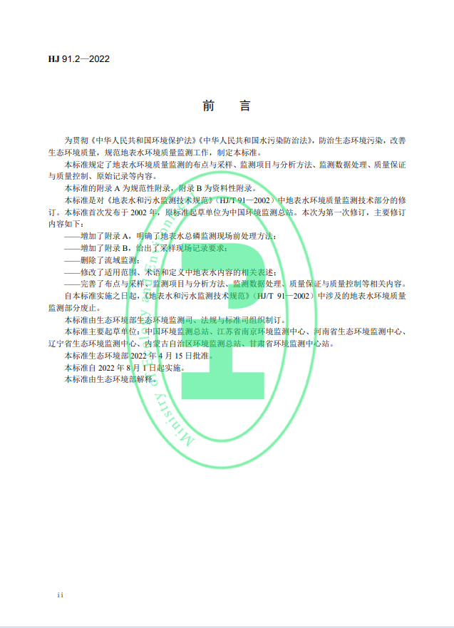 標(biāo)準(zhǔn)號:HJ 91.2—2022部分代替 HJ/T 91—2002