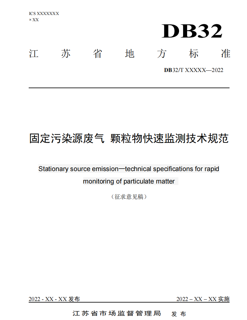江蘇省《固定污染源廢氣 顆粒物快速監(jiān)測(cè)技術(shù)規(guī)范》征求意見(jiàn)