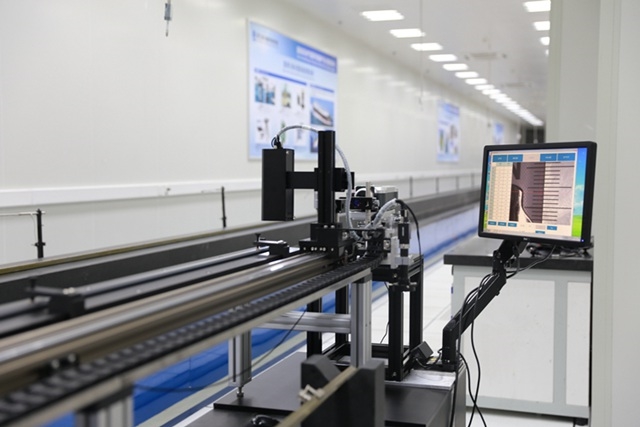 針對(duì)油水界面探測(cè)儀檢測(cè)方法落后問(wèn)題,國(guó)家海洋油氣資源開(kāi)發(fā)裝備產(chǎn)業(yè)計(jì)量中心聯(lián)合舟山市質(zhì)量技術(shù)監(jiān)督檢測(cè)研究院組成了專家組,深入開(kāi)展實(shí)地調(diào)查研究。技術(shù)專家陳歡扎根實(shí)地,依托在長(zhǎng)度精密測(cè)量領(lǐng)域的多年技術(shù)經(jīng)驗(yàn)積累,整合視覺(jué)檢測(cè)、機(jī)電自動(dòng)化技術(shù),積極攻關(guān),最終研發(fā)一套針對(duì)油水界面探測(cè)儀的全自動(dòng)檢測(cè)系統(tǒng),實(shí)現(xiàn)了測(cè)量過(guò)程自動(dòng)化,測(cè)量數(shù)據(jù)自動(dòng)記錄,一鍵生成報(bào)告。系統(tǒng)研發(fā)自動(dòng)測(cè)量功能,上位機(jī)中選擇油水界面測(cè)量?jī)x的規(guī)格,一鍵自動(dòng)檢測(cè)運(yùn)行,伺服電機(jī)帶動(dòng)機(jī)器視覺(jué)自動(dòng)識(shí)別模組在高精度導(dǎo)軌上運(yùn)行,根據(jù)預(yù)置點(diǎn)位自動(dòng)識(shí)別圖像中線紋位置,結(jié)合圖像算法和激光干涉儀標(biāo)準(zhǔn)數(shù)據(jù)實(shí)現(xiàn)精確檢測(cè);系統(tǒng)研發(fā)檢測(cè)數(shù)據(jù)實(shí)時(shí)自動(dòng)記錄功能,對(duì)于預(yù)置點(diǎn)位的數(shù)據(jù),上位機(jī)系統(tǒng)通過(guò)算法處理獲取準(zhǔn)確檢測(cè)數(shù)據(jù),并實(shí)現(xiàn)軟件中自動(dòng)記錄功能。系統(tǒng)研發(fā)報(bào)告一鍵生成功能,根據(jù)應(yīng)用實(shí)際需求,定制化報(bào)告,可一鍵生成導(dǎo)出。檢測(cè)系統(tǒng)操作方便,檢測(cè)效率高,大幅度縮短油水界面探測(cè)儀的檢測(cè)時(shí)間,助力海洋經(jīng)濟(jì)快速發(fā)展。系統(tǒng)服務(wù)于各類檢測(cè)機(jī)構(gòu)、企業(yè),滿足油水界面探測(cè)儀的檢測(cè)需求。助力了計(jì)量檢測(cè)單位、企業(yè)等檢測(cè)工作的數(shù)字化、高效化。
