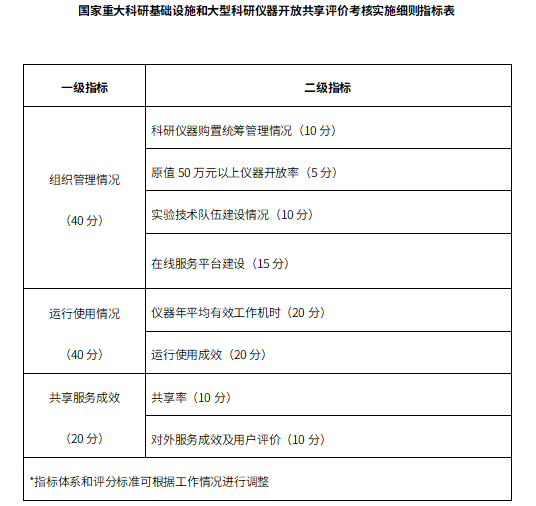 國家重大科研基礎(chǔ)設(shè)施和大型科研儀器開放共享評價(jià)考核實(shí)施細(xì)則