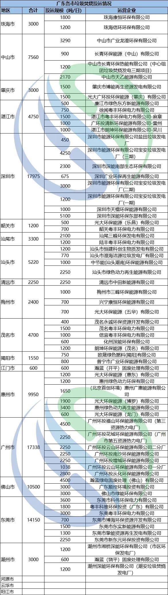 目前,廣州垃圾焚燒的運(yùn)營規(guī)模為17338噸/日,排名廣東第二。在廣東,無論是經(jīng)濟(jì)還是其它,一般“對手”只有兩個,一個深圳,一個東莞!