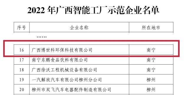 2022年7月12日,廣西壯族自治區(qū)工業(yè)和信息化廳發(fā)布2022年廣西智能工廠示范企業(yè)名單,博世科成功入選。自治區(qū)工信部門自2018年起組織開展廣西智能工廠示范企業(yè)認定工作,旨在篩選出一批智能制造標(biāo)桿示范企業(yè),帶動全區(qū)智能制造水平提升。