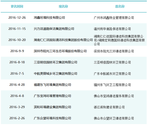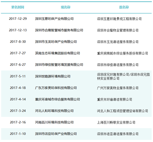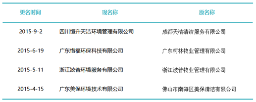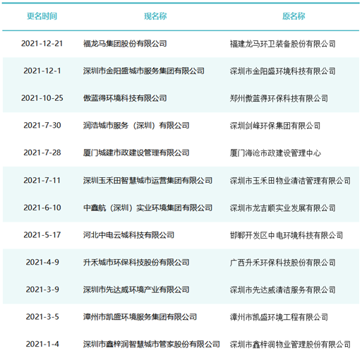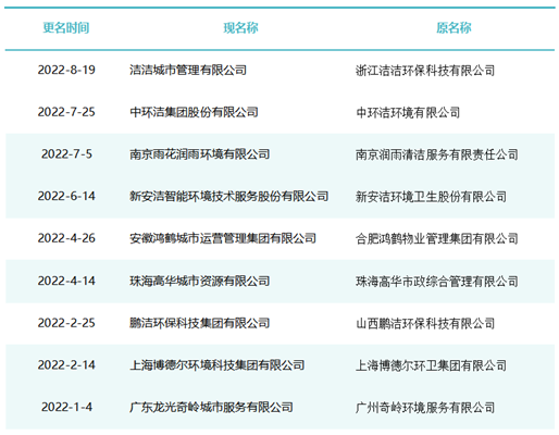 作為玉禾田[300815]最主要的環(huán)衛(wèi)項目投標主體,玉禾田物業(yè)清潔公司在名稱上用“智慧城市運營”替換“物業(yè)清潔”,則是希望轉(zhuǎn)型邁向智慧城市運營商之路。司南君在對近八年的更名規(guī)律進行總結與梳理發(fā)現(xiàn),環(huán)衛(wèi)企業(yè)“更名潮”大概可以分為三個階段。第一波更名潮從2015-2018年。第一波更名潮追求專業(yè)化發(fā)展道路,這個時期的更名熱詞是“環(huán)境服務”、“環(huán)境科技”、”環(huán)保產(chǎn)業(yè)“、“環(huán)保技術”,一大批清潔公司、保潔公司、環(huán)衛(wèi)公司、物業(yè)公司更名為“環(huán)境服務公司”、“環(huán)境科技公司”、”環(huán)保技術公司“。第二波更名潮從2019年到2021年。第二波更名潮集體轉(zhuǎn)向城市綜合服務方向。這一時期的更名熱點是“城市管理”、“城市服務”、“城市管家”、“智慧城市運營”、“公共事業(yè)管理”等,用這些熱詞替代“環(huán)保技術”、“環(huán)衛(wèi)服務”、“環(huán)境科技”、“環(huán)境服務”等傳統(tǒng)環(huán)衛(wèi)詞匯。進入2022年度,環(huán)衛(wèi)企業(yè)迎來第三波更名潮。今后一定時期,環(huán)衛(wèi)行業(yè)的發(fā)展將面臨多重挑戰(zhàn),環(huán)衛(wèi)企業(yè)更名也將更富多元化,因此企業(yè)更名也必將根據(jù)每家公司對行業(yè)發(fā)展的理解認識及自身戰(zhàn)略定位而各有側(cè)重。2015年到2018年是環(huán)衛(wèi)市場化第一波大發(fā)展時期。這期間,環(huán)衛(wèi)市場化大閘初步敞開,PPP模式引入環(huán)衛(wèi)領域,城鄉(xiāng)環(huán)衛(wèi)一體化模式如火如荼,年化額超千萬元、合同額超億元的環(huán)衛(wèi)大標開始批量出現(xiàn),傳統(tǒng)物業(yè)清潔企業(yè)、非環(huán)衛(wèi)類物業(yè)公司大量涌入環(huán)衛(wèi)行業(yè)。因此,環(huán)衛(wèi)企業(yè)第一波更名潮追求專業(yè)化發(fā)展道路,這個時期的更名熱詞是“環(huán)境服務”、“環(huán)境科技”、”環(huán)保產(chǎn)業(yè)“、“環(huán)保技術”,一大批清潔公司、保潔公司、環(huán)衛(wèi)公司、物業(yè)公司更名為“環(huán)境服務公司”、“環(huán)境科技公司”、”環(huán)保技術公司“。這期間有近40家百強企業(yè)或日后發(fā)展成百強企業(yè)的環(huán)衛(wèi)公司完成了更名,如福建東飛環(huán)境集團有限公司、濱南生態(tài)環(huán)境集團股份有限公司、北京慧豐清軒環(huán)境科技集團有限公司、河北人和環(huán)境科技有限公司、浙江波普環(huán)境服務有限公司、深圳市陽光三環(huán)生態(tài)環(huán)境股份有限公司、深圳世路源環(huán)境有限公司(深兄環(huán)境)、廣東美保環(huán)境技術有限公司、泓欣環(huán)境集團有限公司等。第二波:從“環(huán)衛(wèi)服務”到“城市管家”2019年到2021年是“環(huán)衛(wèi)市場化”高潮向“城市大管家模式”的轉(zhuǎn)型期初期。這期間,環(huán)衛(wèi)市場化從大發(fā)展走向大高潮,城市精細化管理從“理念”走向“實踐”,各路國有物業(yè)公司積極推動城市大管家模式,大批頭部物管企業(yè)通過大并購等方式搶灘環(huán)衛(wèi)及城市服務市場。由此,順應時代大潮,環(huán)衛(wèi)企業(yè)第二波更名潮集體轉(zhuǎn)向城市綜合服務方向。這一時期的更名熱點是“城市管理”、“城市服務”、“城市管家”、“智慧城市運營”、“公共事業(yè)管理”等,用這些熱詞替代“環(huán)保技術”、“環(huán)衛(wèi)服務”、“環(huán)境科技”、“環(huán)境服務”等傳統(tǒng)環(huán)衛(wèi)詞匯。這期間有40余家知名環(huán)衛(wèi)企業(yè)完成了更名,如僑銀城市管理股份有限公司、北控城市環(huán)境服務集團有限公司、深圳玉禾田智慧城市運營集團有限公司、深圳市鑫梓潤智慧城市管家股份有限公司、康潔科技集團有限公司、西安高科城市服務管理有限責任公司、溫州市鹿城區(qū)城市管理服務有限公司、廣東路通公用事業(yè)管理集團有限公司、深圳市金陽盛城市服務集團有限公司。第三波:多重挑戰(zhàn)并存轉(zhuǎn)型期進入2022年度,環(huán)衛(wèi)企業(yè)迎來第三波更名潮。這一時期也將是城市管家模式完成第一輪測試后的大發(fā)展時期。圖表8:2022年度更名“百強企業(yè)”(截止2022年8月份)今后一定時期,環(huán)衛(wèi)行業(yè)的發(fā)展將面臨多重挑戰(zhàn):(一)以電動環(huán)衛(wèi)車、氫能環(huán)衛(wèi)車等為代表的“新能源化”;(二)以智慧環(huán)衛(wèi)與無人操作環(huán)衛(wèi)裝備為代表的“智能化”;(三)以城市大管家為代表的城市管理“精細化”;(四)以智慧市政、智慧城市為代表的“平臺化”;(五)以新型城鎮(zhèn)化和城鄉(xiāng)融合發(fā)展為代表的“全域化”;(六)城鄉(xiāng)生活垃圾分類“常態(tài)化”……這一時期有太多的不確定性,環(huán)衛(wèi)企業(yè)更名也將更富多元化,因此企業(yè)更名也必將根據(jù)每家公司對行業(yè)發(fā)展的理解認識及自身戰(zhàn)略定位而各有側(cè)重。其實,這個特點,從最近更名的“新安潔”和“中環(huán)潔”的新名稱可見一斑?!靶掳矟崱备靶掳矟嵵悄墉h(huán)境技術服務股份有限公司”,從“傳統(tǒng)環(huán)衛(wèi)”向“智能環(huán)境技術服務平臺”轉(zhuǎn)型;“