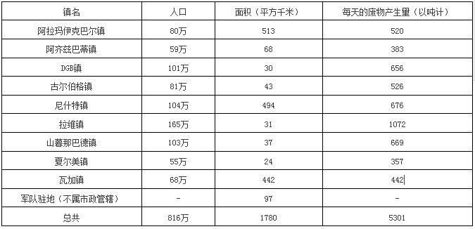 拉合爾下轄9鎮(zhèn)的人口、面積以及廢物產生量