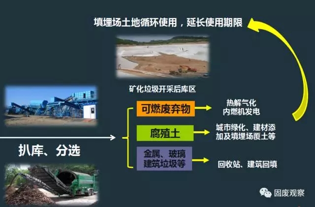 垃圾填埋場(chǎng)是城市的稀缺資源,為延長(zhǎng)填埋場(chǎng)的使用年限,使土地循環(huán)使用,舊填埋場(chǎng)整治是必須走的路。通過新中水研究發(fā)現(xiàn),封場(chǎng)6-8年后,垃圾中易降解物質(zhì)完全或接近完全降解,成分基本達(dá)到穩(wěn)定化,可進(jìn)行開采利用的垃圾,通過對(duì)這些舊填埋場(chǎng)的扒庫(kù)分選,可分出可燃廢棄物、腐殖土、金屬、玻璃等??扇紡U棄物可熱解氣化用于內(nèi)燃機(jī)發(fā)電;腐殖土可用于城市綠化、建材添加及填埋場(chǎng)覆土等;金屬、玻璃回收利用。
