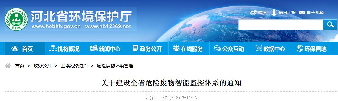 日前,河北環(huán)保廳印發(fā)關(guān)于建設(shè)全省危險(xiǎn)廢物智能監(jiān)控體系的通知。通知要求,河北危廢企業(yè)安裝智能監(jiān)控體系。涉及危險(xiǎn)廢物(不含醫(yī)療廢物)重點(diǎn)產(chǎn)廢單位(年產(chǎn)100噸以上危險(xiǎn)廢物)、自行利用處置危險(xiǎn)廢物單位;全省所有危險(xiǎn)廢物(不含醫(yī)療廢物)經(jīng)營(yíng)單位(含收集單位),及符合豁免管理規(guī)定的危險(xiǎn)廢物處置、利用單位(以下簡(jiǎn)稱豁免管理經(jīng)營(yíng)單位)。2018年1月31日前,全省所有正常經(jīng)營(yíng)的危險(xiǎn)廢物經(jīng)營(yíng)單位,完成安裝和聯(lián)網(wǎng)工作。2018年6月30日前,全省所有危險(xiǎn)廢物(不含醫(yī)療廢物)重點(diǎn)產(chǎn)廢單位(年產(chǎn)100噸以上危險(xiǎn)廢物)、自行利用處置單位、收集單位和豁免管理經(jīng)營(yíng)單位,完成安裝和聯(lián)網(wǎng)工作。全文如下: