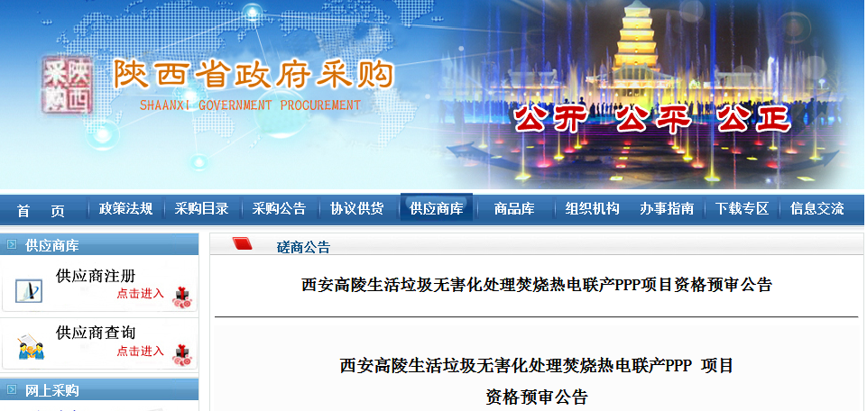 陜西省政府采購網(wǎng)發(fā)布了《西安高陵生活垃圾無害化處理焚燒熱電聯(lián)產(chǎn)PPP 項目資格預審公告》。