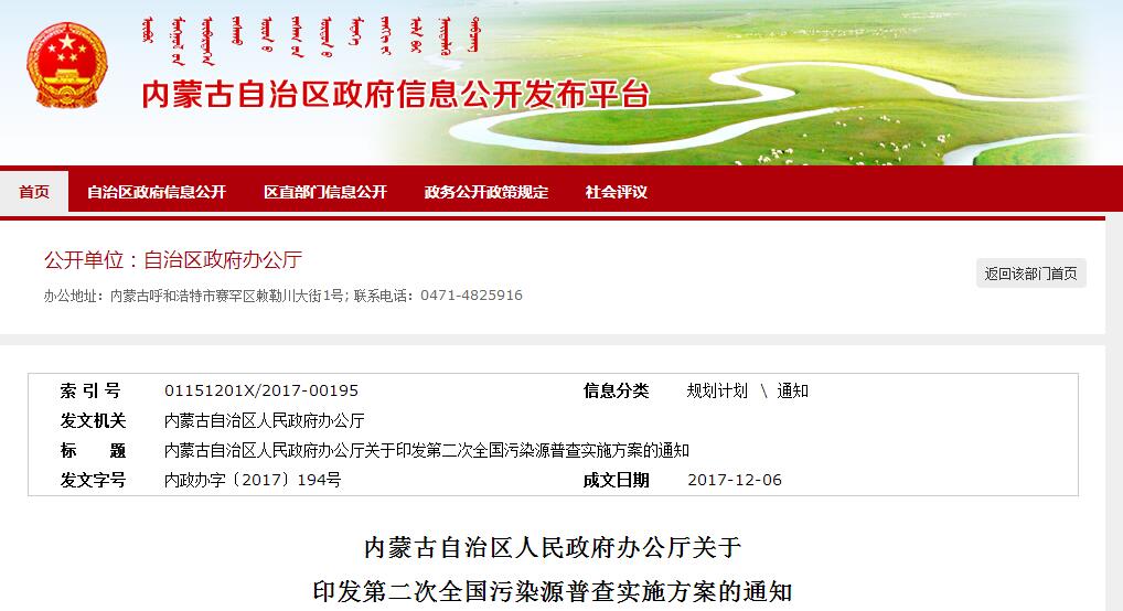 內(nèi)蒙古自治區(qū)第二次全國污染源普查實施方案