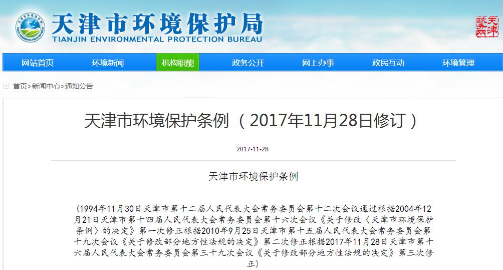 《天津市環(huán)境保護(hù)條例》(2017年11月28日修訂版)