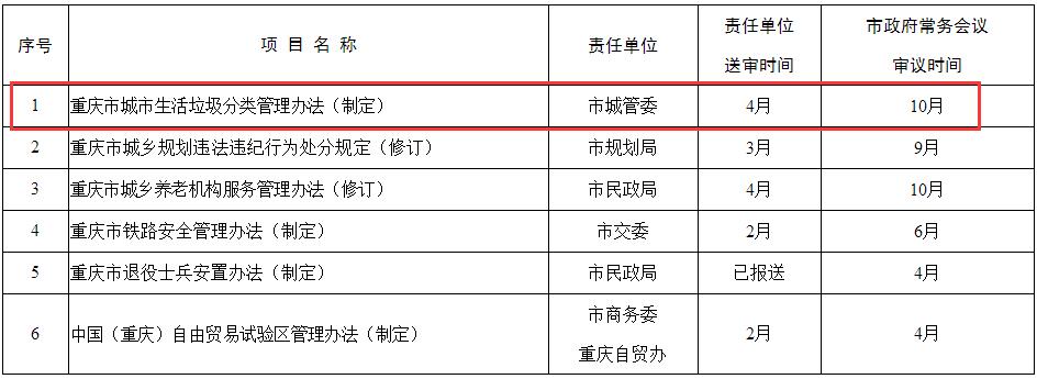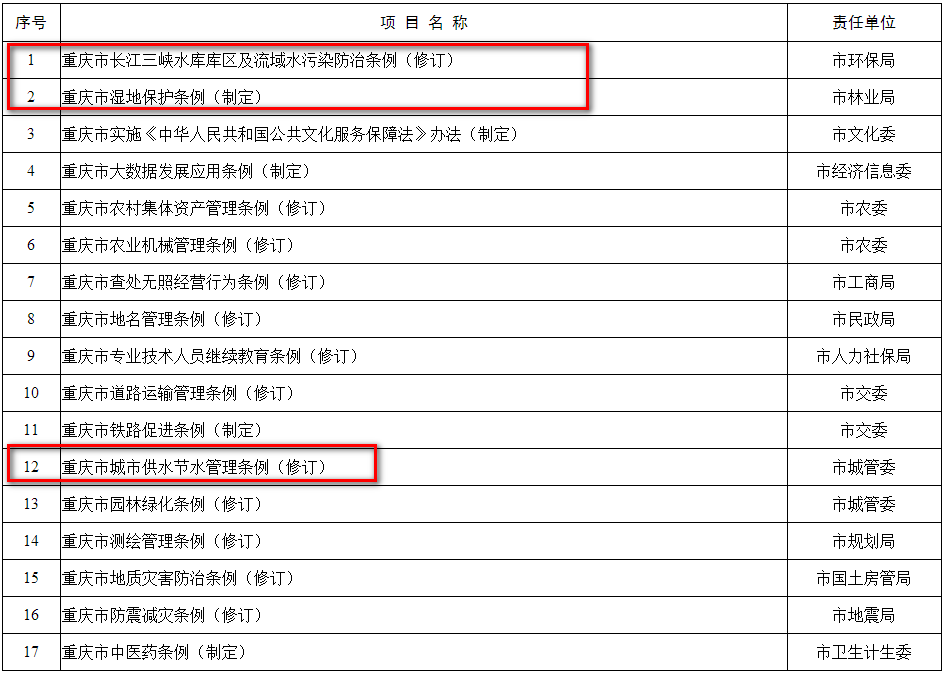 重慶市2018年立法工作計劃公布,涉及水污染防治、生活垃圾分類、海綿城市建設(shè)等眾多環(huán)保類立法項,詳情如下: