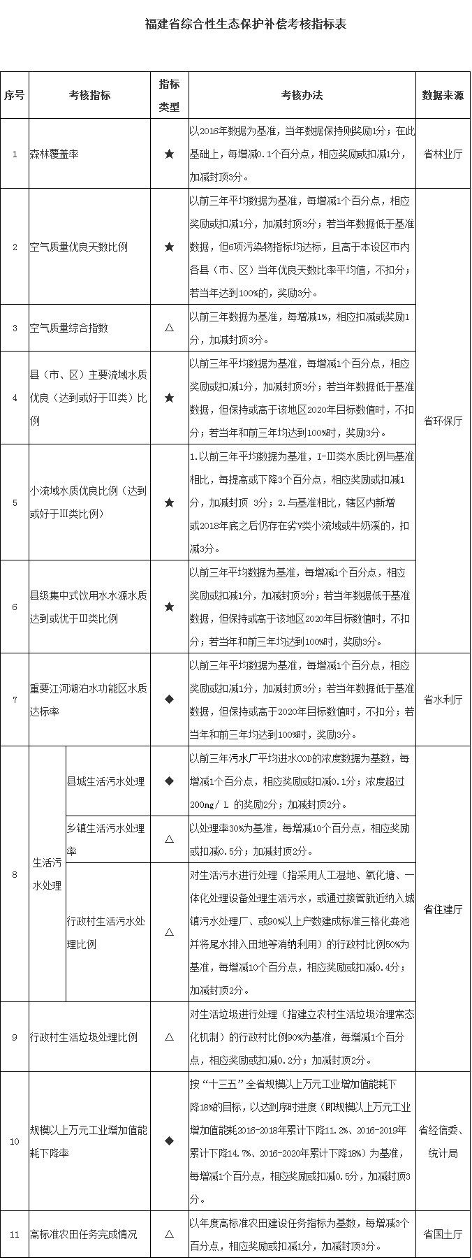 2.福建省綜合性生態(tài)保護補償考核指標(biāo)表