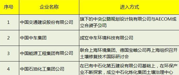 受益于土壤修復的巨大空間與政策紅利,越來越多的企業(yè)進入土壤修復行業(yè)。據(jù)專家介紹,由于目前土壤修復公司成立暫不需要相關資質,所以企業(yè)來源復雜,大部分來自于房地產(chǎn)業(yè)、設備制造業(yè)、水處理及固廢行業(yè)、環(huán)保咨詢業(yè)以及儀器行業(yè)等,還有好多與國外企業(yè)組團形成。像中國中車、中交建等央企也紛紛跨界進入土壤修復領域。此外,國內土壤修復項目在招標過程中,具體項目根據(jù)運作模式、內容及難度的不同,對企業(yè)資質及資金規(guī)模均有不同要求。據(jù)統(tǒng)計,截至2017年5月?lián)碛型寥老嚓P業(yè)務的企業(yè)達到2600多家,是環(huán)保行業(yè)最受矚目的領域之一。