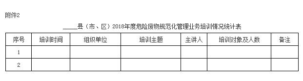 4月30日前,各縣、市、區(qū)環(huán)保局要對轄區(qū)內(nèi)危險廢物產(chǎn)生和經(jīng)營單位開展危險廢物相關(guān)知識培訓(xùn),認(rèn)真學(xué)習(xí)相關(guān)法律法規(guī),新修訂的危險廢物規(guī)范化管理指標(biāo)體系、危險廢物產(chǎn)生單位管理計劃制定指南、新版危險廢物名錄、固體廢物管理信息系統(tǒng)等,做好培訓(xùn)記錄,培訓(xùn)情況(附件2)于5月底前報市局。