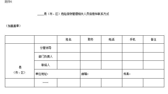 6. 縣(市、區(qū))危險廢物管理相關(guān)人員信息和聯(lián)系方式