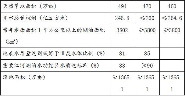 ——草地。到2020年,全省天然草地退減速度得到有效遏制,天然草地面積控制在470萬畝,天然草場、高山草甸、草地自然保護區(qū)等資源得到全面保護,草地生態(tài)環(huán)境得到改善,草地生態(tài)系統(tǒng)自我修復能力增強;人工種草和草地改良技術得到有效提高;初步建立以草地生態(tài)補助獎勵機制、草地監(jiān)測評價考核等為主要內(nèi)容的草地休養(yǎng)生息保障制度。
