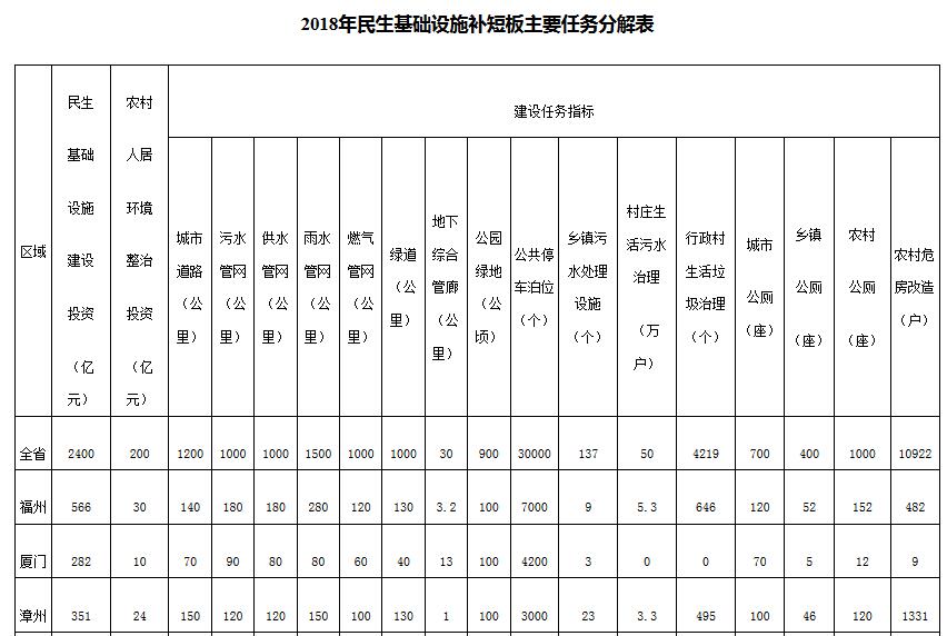日前,福建印發(fā)《2018年民生基礎設施補短板實施方案》。