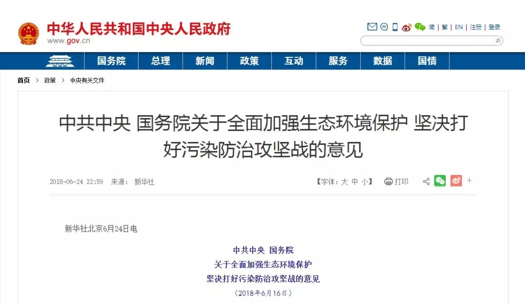 中共中央 國務(wù)院 關(guān)于全面加強生態(tài)環(huán)境保護堅決打好污染防治攻堅戰(zhàn)的意見