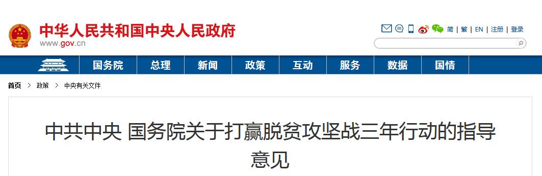 中共中央 國務(wù)院關(guān)于打贏脫貧攻堅(jiān)戰(zhàn)三年行動的指導(dǎo)意見
