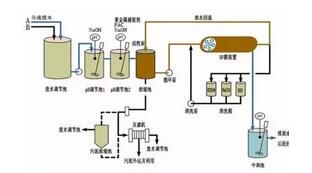 當(dāng)單一的處理方法處理效果不理想時,為了達(dá)到污水排放的標(biāo)準(zhǔn),可以使用多種方法聯(lián)合的方式。最常見的是物理-化學(xué)處理法,其基本工藝如下: