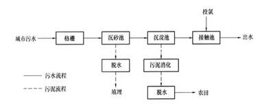 活性污泥工藝是國內(nèi)外城市污水處理工藝的主流。由于其較高的處理效率,運(yùn)行穩(wěn)定可靠,而被大中型污水處理廠廣泛使用。其基本工藝流程圖如下: