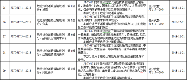 該標(biāo)準(zhǔn)將于2018年12月1日起實(shí)施。標(biāo)準(zhǔn)包括7個部分、600多頁、40多萬字,內(nèi)容完整、系統(tǒng)性強(qiáng),對危險(xiǎn)貨物分類、包裝、托運(yùn)、裝卸、運(yùn)輸?shù)拳h(huán)節(jié)的操作要求都進(jìn)行了明確規(guī)定。