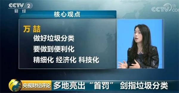 財經(jīng)評論員萬喆:垃圾分類要做到便利化、精細化、經(jīng)濟化、科技化。①普通人知道分類垃圾在哪投放,這就是便利化;②精細化就是讓大家知道怎么分類;③經(jīng)濟化就是罰的同時還能讓相關(guān)企業(yè)從中得到收益;④科技化就是最后的處理是不是真的能夠資源化和無害化。