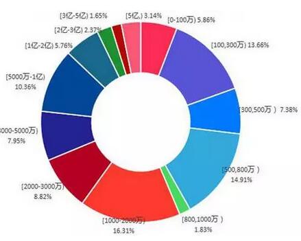 從下圖我們可以看到最近幾年環(huán)保類項目融資額在在一千萬以下的部分占大部分比例,一億以上的金額則比例很小,環(huán)保產(chǎn)業(yè)要想進一步的發(fā)展,除了需要從銀行方面融資外,還需拓寬融資渠道,創(chuàng)新融資方式。