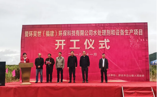 2018年11月21日,愛環(huán)吳世(蘇州)環(huán)保股份有限公司全資控股福建子公司在邵武金塘工業(yè)園區(qū)內(nèi)投資建設(shè)的環(huán)保型水處理生產(chǎn)和智能設(shè)備制造項目舉行開工奠基典禮儀式。