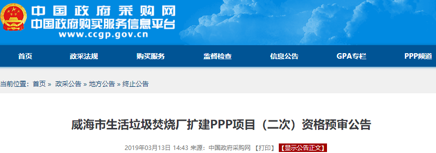 中國環(huán)聯(lián)網(wǎng)獲悉,3月13日,山東省威海市生活垃圾焚燒廠擴(kuò)建PPP項(xiàng)目發(fā)布二次資格預(yù)審公告。1、項(xiàng)目概況:1.1項(xiàng)目名稱:威海市生活垃圾焚燒廠擴(kuò)建PPP項(xiàng)目1.2項(xiàng)目編號:SDGP3710002019020000221.3采購人:威海市園林管理局2、采購需求2.1本項(xiàng)目主要工程內(nèi)容為500噸/日處理量...