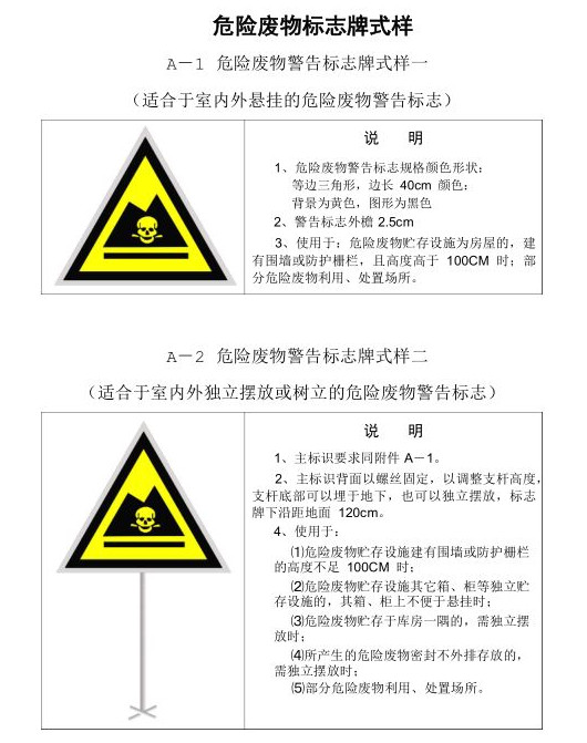 危險廢物標(biāo)志牌全新改版,標(biāo)志內(nèi)圖案與老版稍有變化危險廢物標(biāo)簽牌,主要是用于粘貼和系掛于危險廢物包裝容器外的標(biāo)簽危險廢物分類標(biāo)牌有爆炸、易燃、助燃、刺激性、有毒、有害腐蝕性、石棉,新版標(biāo)志牌式樣如下圖。醫(yī)療廢物標(biāo)志牌,分為醫(yī)療廢物暫存、處置場所警示標(biāo)志,醫(yī)院科室醫(yī)療廢物收集點(diǎn)警示標(biāo)志,醫(yī)療廢物轉(zhuǎn)運(yùn)車警...