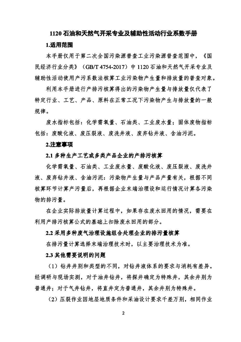 導(dǎo)讀:第二次全國(guó)污染源普查 石油和天然氣開采專業(yè)及輔助性活動(dòng)行業(yè)系數(shù)手冊(cè)(初稿) 本手冊(cè)僅用于第二次全國(guó)污染源普查工業(yè)污染源普查范圍中,《國(guó)民經(jīng)濟(jì)行業(yè)分類》(GB/T 4754-2017)中1120石油和天然氣開采專業(yè)及輔助性活動(dòng)使用產(chǎn)污系數(shù)法核算工業(yè)污染物產(chǎn)生量和排放量的普查對(duì)象。利用本手冊(cè)進(jìn)行產(chǎn)...