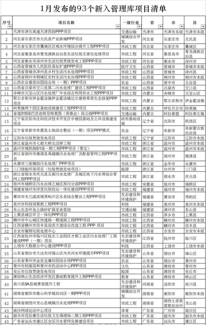 財(cái)政部PPP中心發(fā)布2019年1月納入全國PPP綜合信息平臺(tái)項(xiàng)目管理庫的項(xiàng)目清單。清單中涉及垃圾焚燒發(fā)電及污水處理等環(huán)保PPP項(xiàng)目。詳情如下:
