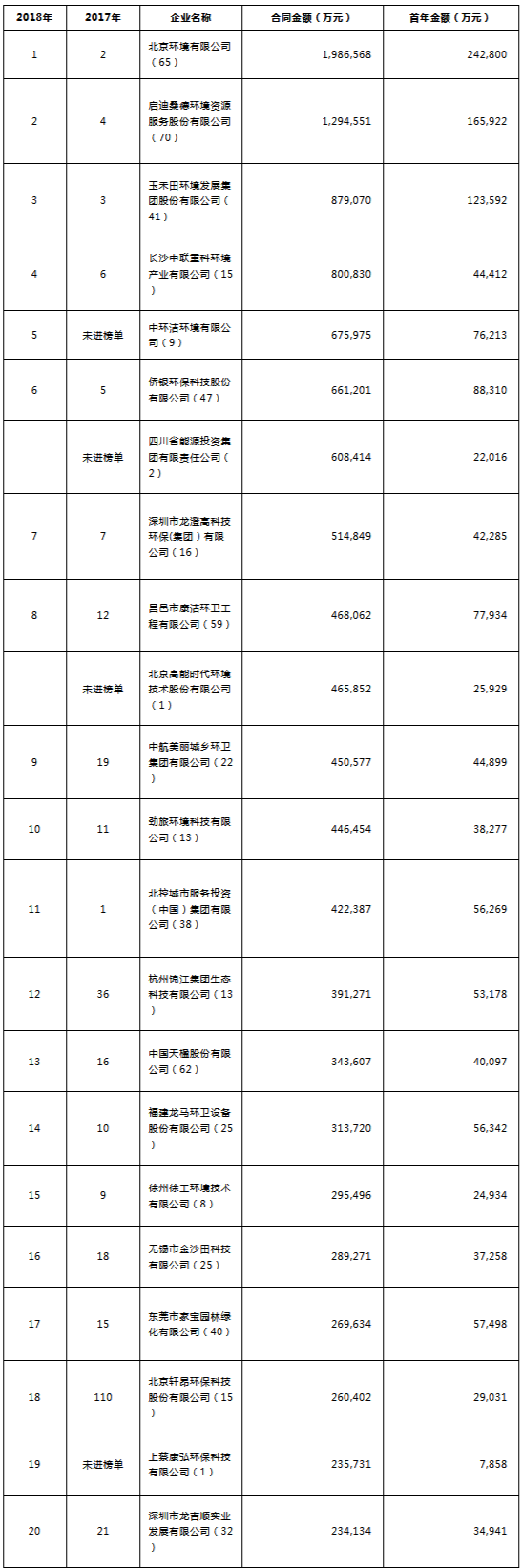 近日,環(huán)境服務(wù)行業(yè)數(shù)據(jù)挖掘與監(jiān)測平臺“環(huán)境司南”發(fā)布“環(huán)境司南2018年度環(huán)衛(wèi)市場化報(bào)告”,報(bào)告公布了2018年度環(huán)衛(wèi)服務(wù)企業(yè)(簽約能力)百強(qiáng)榜,盈峰環(huán)境全資子公司中聯(lián)環(huán)境位列百強(qiáng)榜第四位。本次環(huán)衛(wèi)服務(wù)企業(yè)榜單共收錄2018年1~12月份中標(biāo)環(huán)衛(wèi)服務(wù)項(xiàng)目/標(biāo)段13309個(gè),涉及合同總金額2278億元...