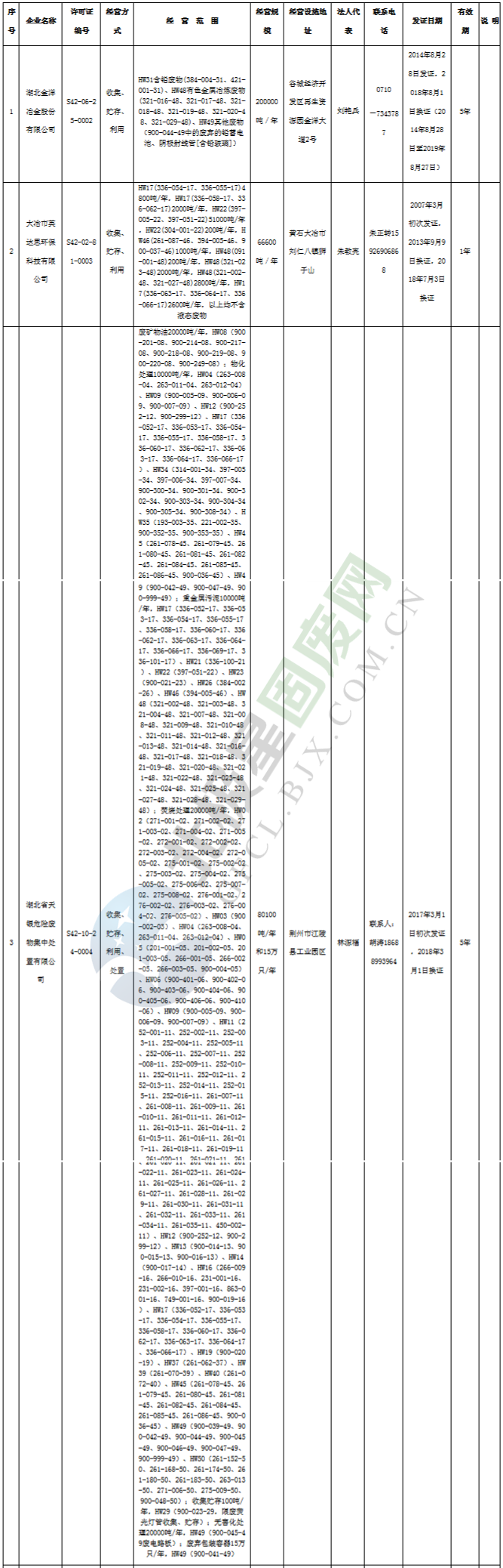 日前湖北省生態(tài)環(huán)境廳發(fā)布了《湖北省危險(xiǎn)廢物經(jīng)營許可證》單位名錄(截至2019年2月19日,共125家)。具體內(nèi)容如下:原標(biāo)題:《湖北省危險(xiǎn)廢物經(jīng)營許可證》單位名錄(截至2019年2月19日,共125家)