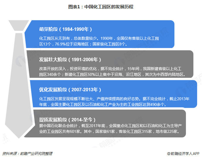 中國化工園區(qū)發(fā)展歷程介紹:隨著我國改革開放的推進(jìn)和世界化工行業(yè)的聚集化發(fā)展,從20世紀(jì)80年代開始,我國各地掀起了興建化工園區(qū)的熱潮。我國化工園區(qū)的發(fā)展經(jīng)歷了萌芽階段、發(fā)展壯大階段、優(yōu)化發(fā)展階段和提質(zhì)發(fā)展階段;截止中國石化聯(lián)合會最新一次統(tǒng)計數(shù)據(jù),截至2017年底,全國重點(diǎn)化工園區(qū)和以石油和化工為主導(dǎo)...