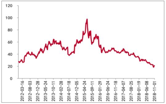 2018Q3環(huán)保板塊整體實現(xiàn)營業(yè)收入1108.3億,同比增加12.5%,增速下滑10.6pct,整體歸母凈利潤為118.9億,同比減少17.8%,環(huán)保板塊收入端增速出現(xiàn)下滑趨勢,而利潤端則首次出現(xiàn)負增長。2018Q3環(huán)保板塊整體毛利率為31.4%,同比減少1.1pct,毛利率下降或與上游原材料成本提...