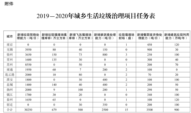 江蘇分類垃圾進(jìn)入“強(qiáng)制時代”,餐廚垃圾如何處理?建筑垃圾資源化利用怎樣進(jìn)行?江蘇省政府日前發(fā)布了《江蘇省城鄉(xiāng)生活垃圾治理工作實施方案》(簡稱方案),根據(jù)方案,到2020年底,全省生活垃圾無害化處理設(shè)施處理能力滿足需求,無害化處理能力達(dá)到8.5萬噸/日以上,城鄉(xiāng)生活垃圾無害化處理率達(dá)到98%以上,除按...