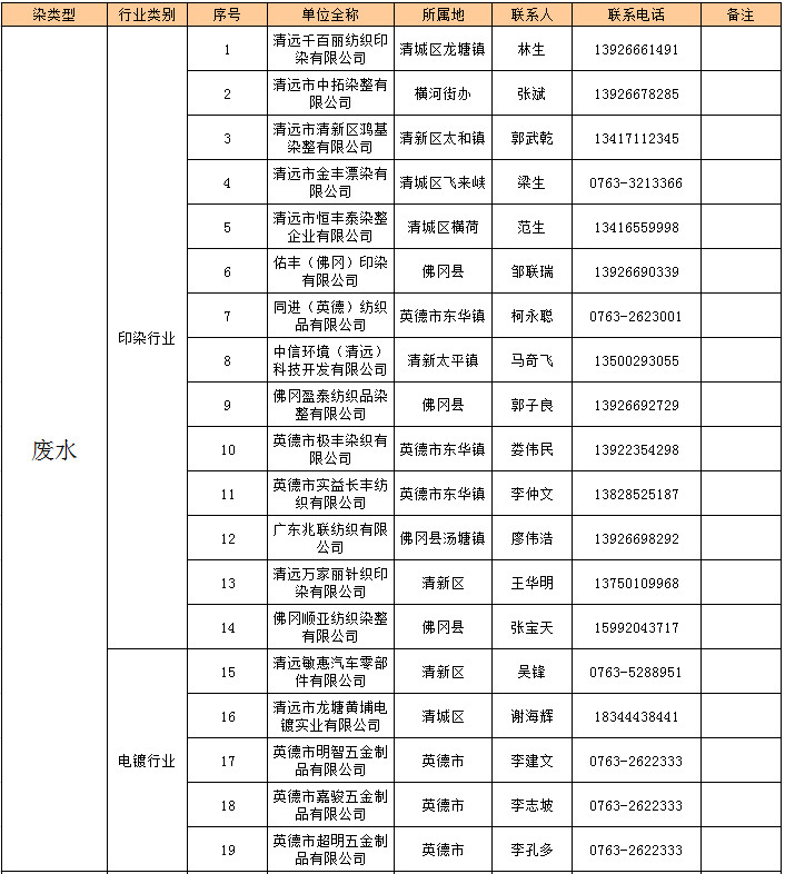 廣東省清遠(yuǎn)市發(fā)布清遠(yuǎn)市2019年重點排污單位。共有重點排污單位82家,涉及廢水、廢氣、有色金屬等。詳情如下: